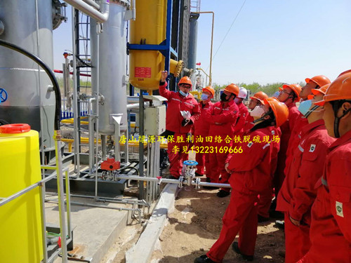 由我公司承建的勝利油田伴生天然氣井絡合鐵脫硫系統正式準備投運,在投運前由我公司陳經理帶領中石化部分領導和員工進行理論與現場實際操作培訓。該井為中石化勝利油田功勛井,由于伴生氣硫化氫含量高,一直處于封井狀態。隨著國家天然氣資源越來越緊缺,國家對于開發高硫天然氣井迫在眉睫。成熟穩定的井口伴生天然氣脫硫系統顯得尤為重要。