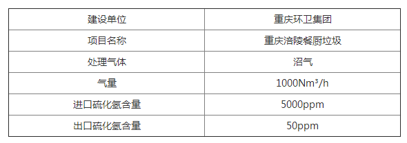 重慶環衛集團餐廚垃圾處理站沼氣脫硫預處理系統由唐山綠源環保科技有限公司承建,其建設規模為日處理餐廚垃圾200噸,每天產生沼氣24000立方米。配套濕法脫硫系統,氣柜系統,以及沼氣火炬系統。該項目于2018年4月開始建設,11月份全面投產運行。